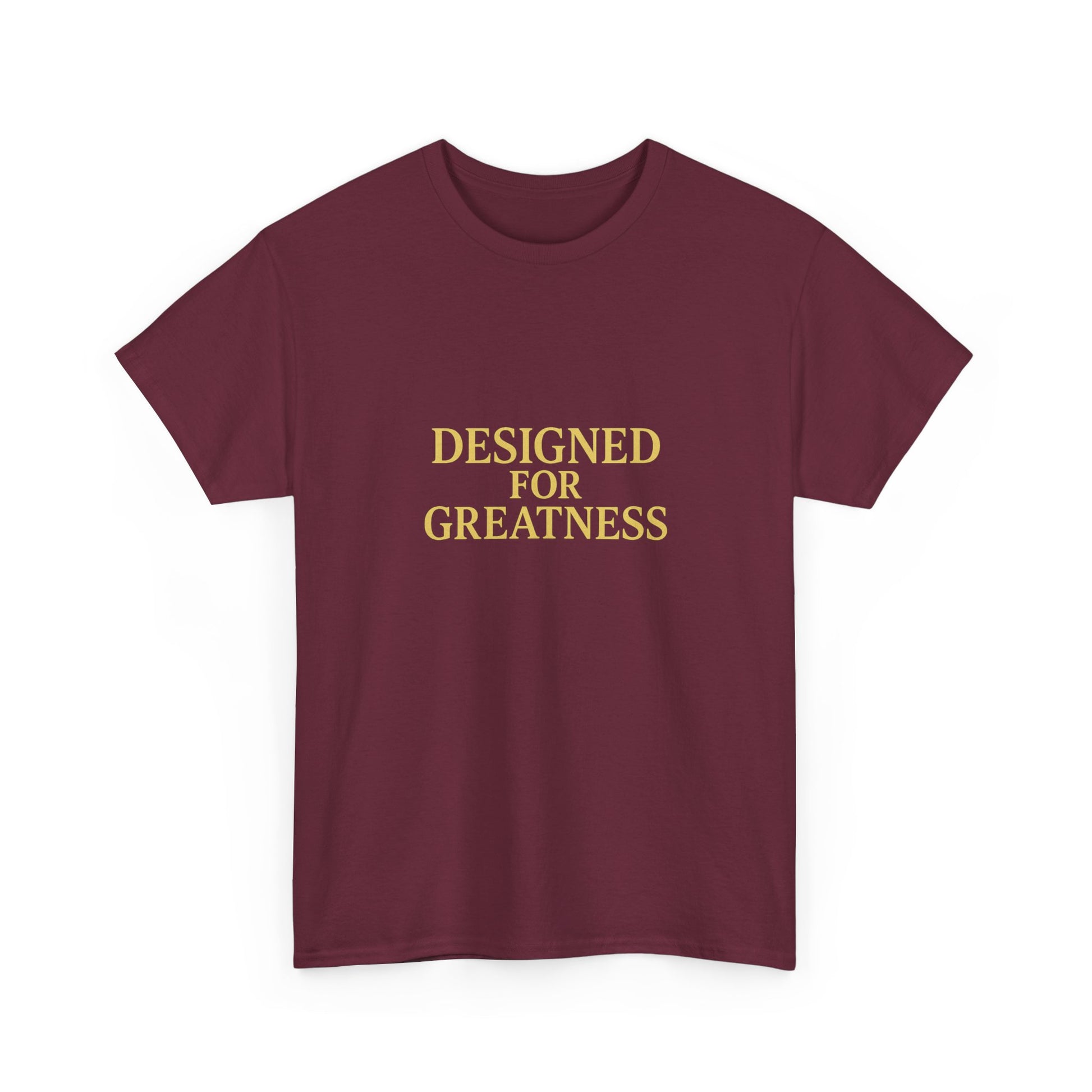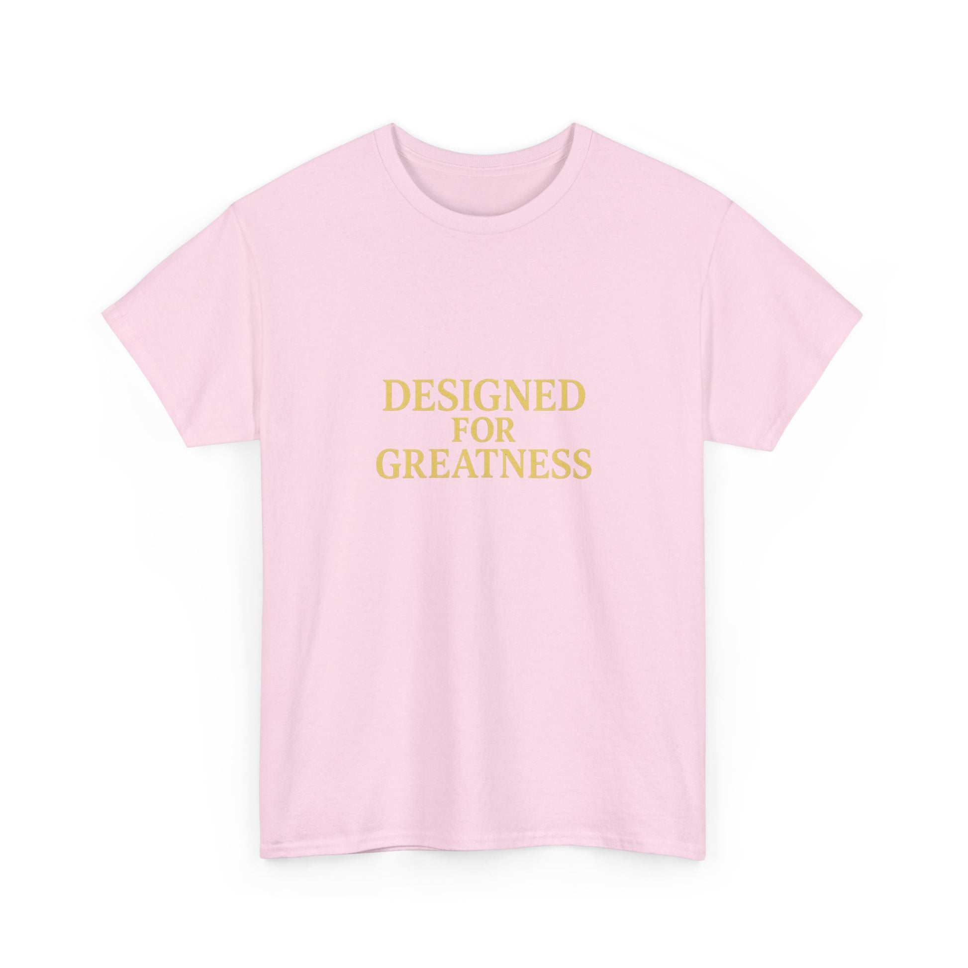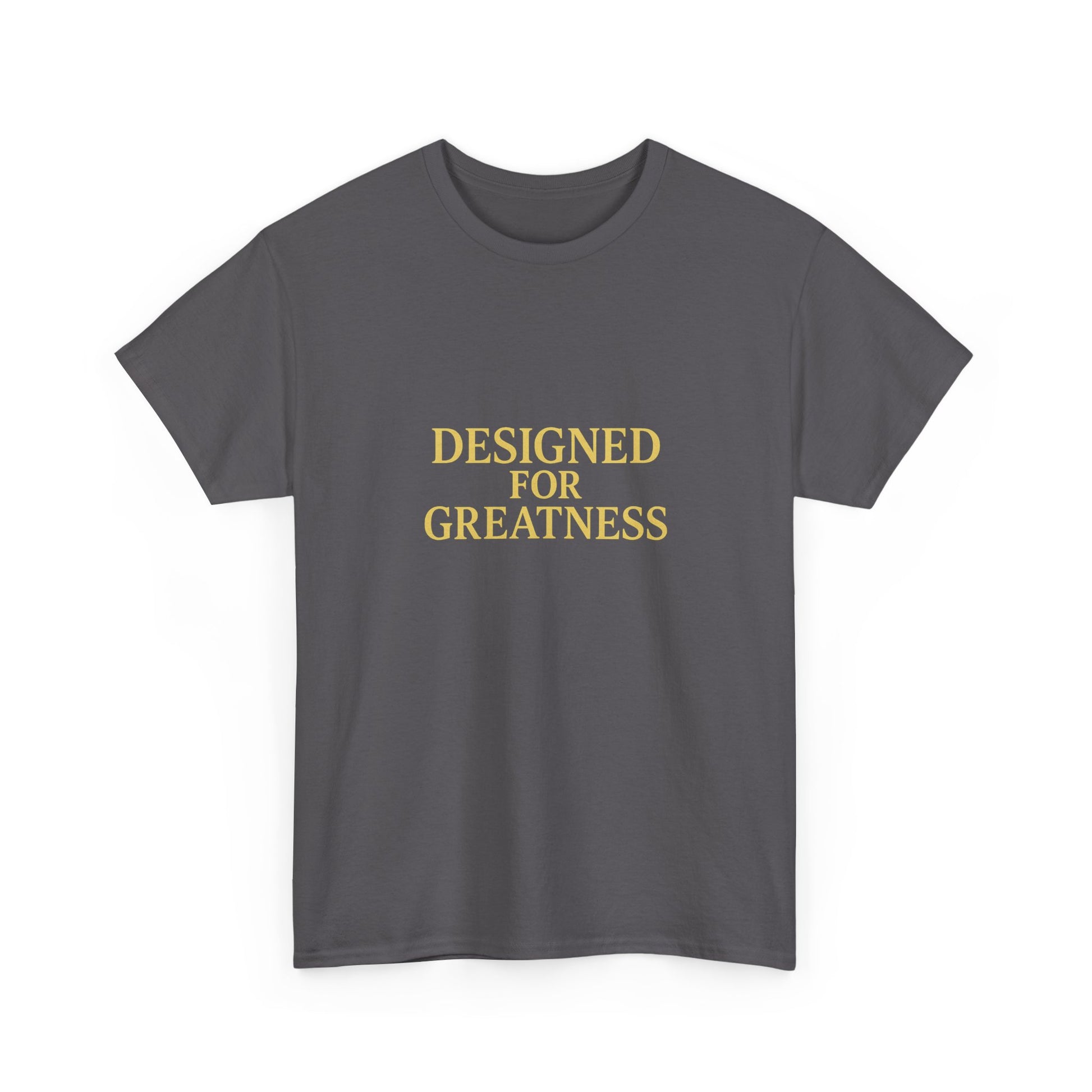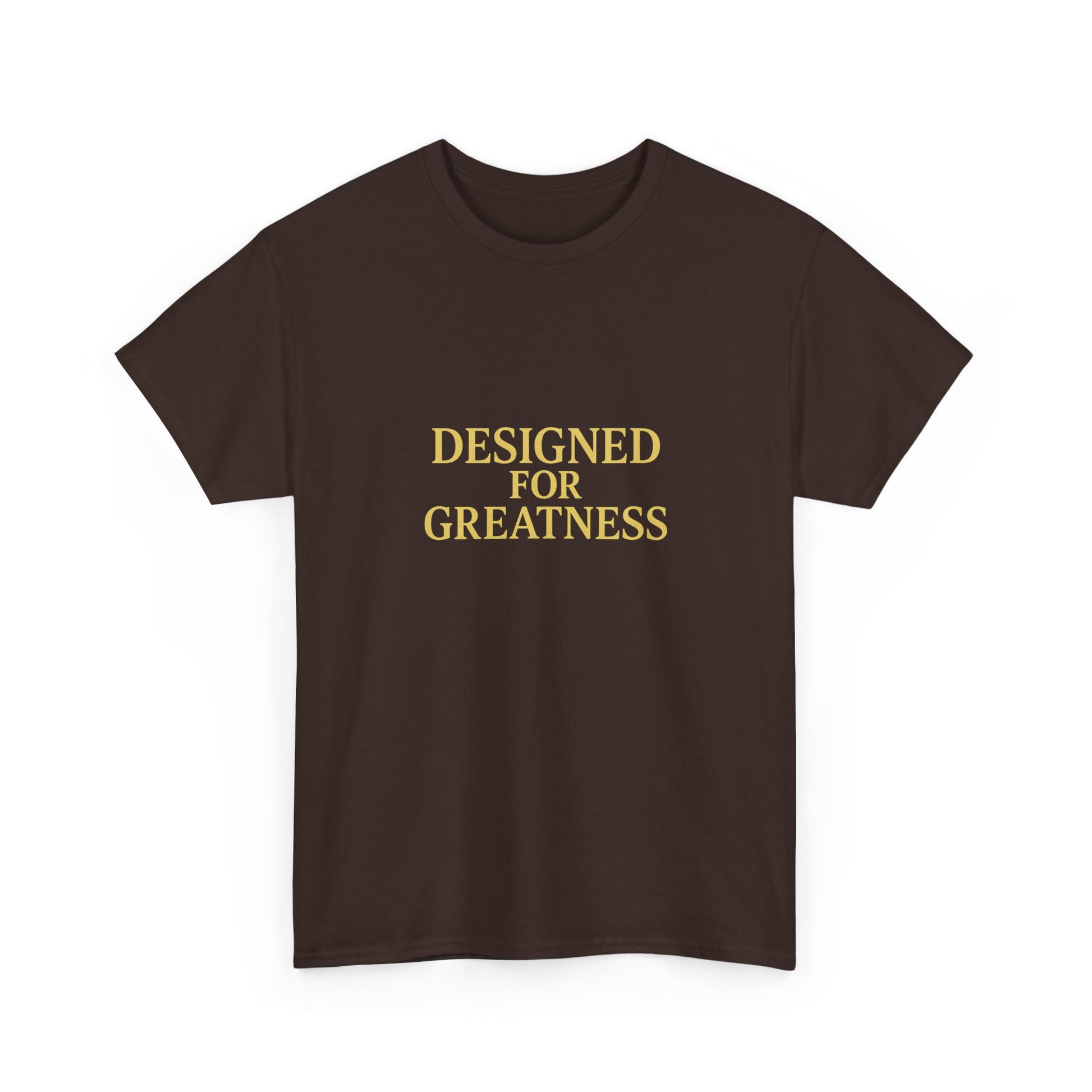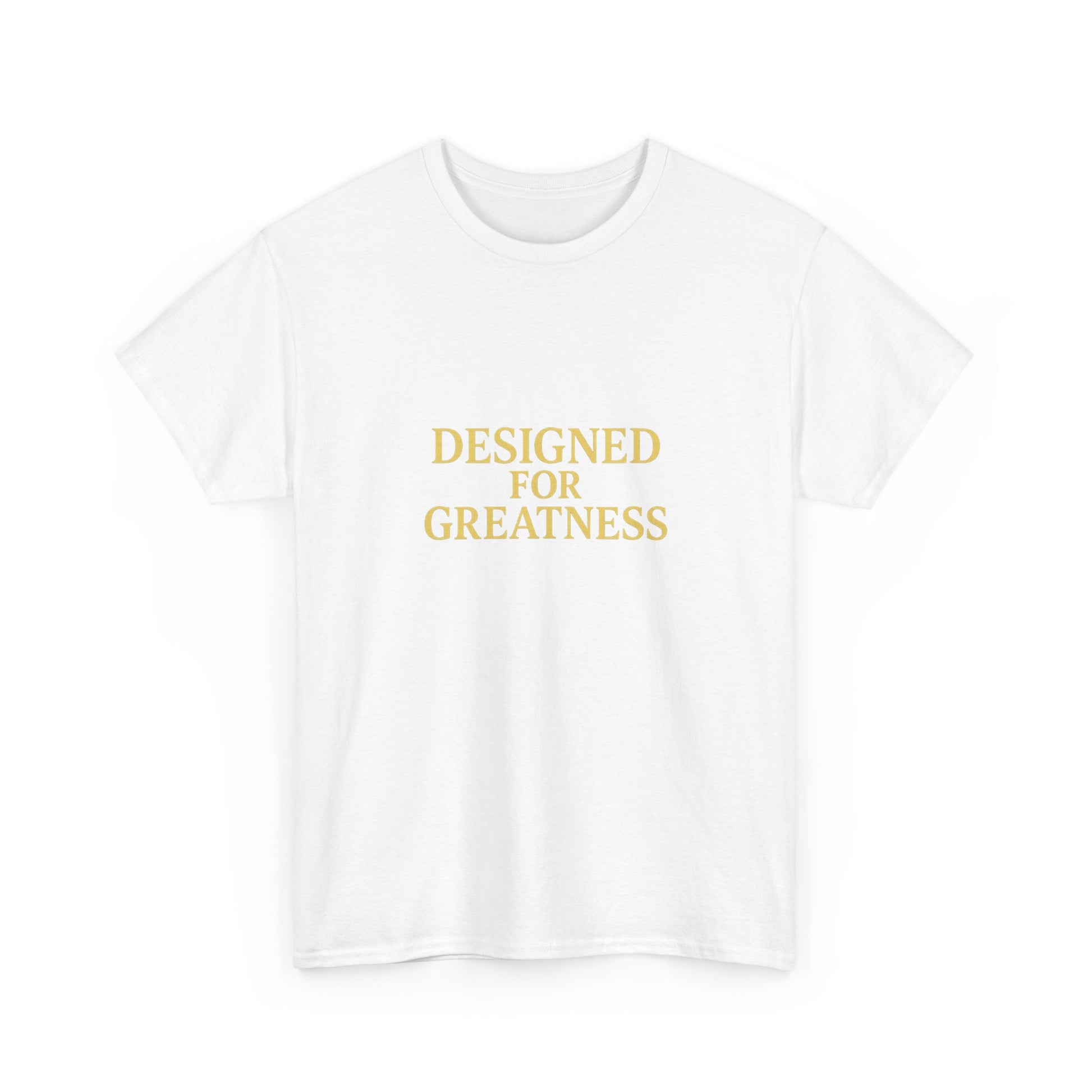 A clean, confident tee that says more with less. Soft, medium-weight cotton and a classic crew neckline give this shirt a relaxed, lived-in feel — but the centered gold lettering, “DESIGNED FOR GREATNESS,” brings quiet intention to everyday moments. Wear it on slow mornings with coffee, slip it over jeans before a casual meeting, or fold it into your travel bag as a subtle reminder to move through the day with purpose. The fit sits comfortably without clinging, and the smooth print stays crisp wash after wash. It’s the kind of shirt that quietly encourages you to stand straighter, speak clearer, and carry a little more ambition into ordinary routines.